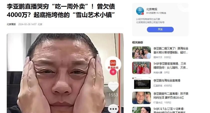 如今的李亚鹏,虽面临债务困扰,婚姻终结。
